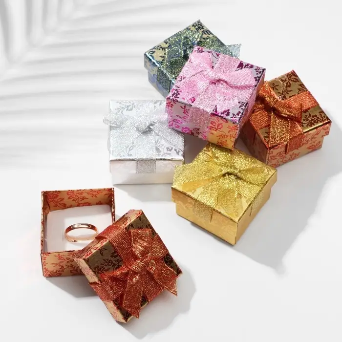 Набор короборчек подарочных 6 шт. под кольцо "Розы блестящие" с бантом, 5*5, цвет МИКС 1249693 10