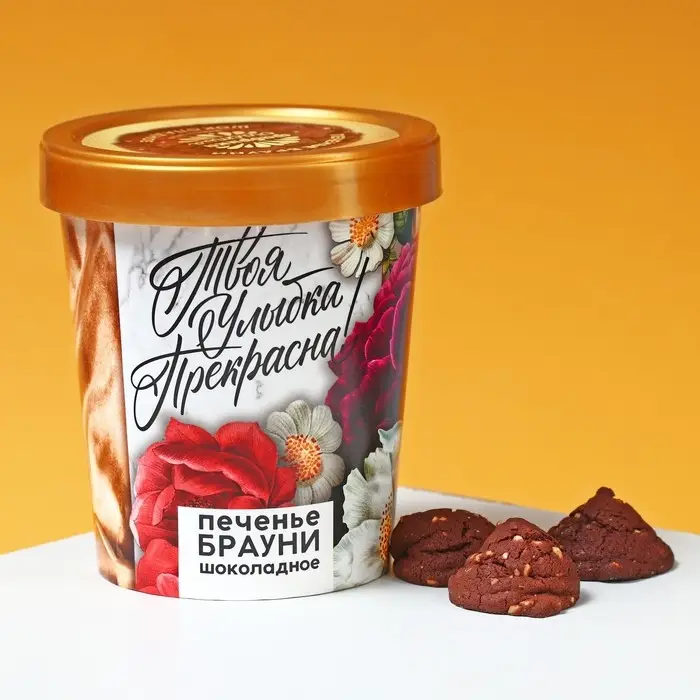 Состав: маргарин (м. д. ж.: 82 %), рафинированные дезодорированные масла в натуральном и модифицированном виде, вода, эмульгаторы: Е322, Е471, Е475, соль поваренная пищевая, краситель – Е160а, ароматизатор, регулятор кислотности – лимонная кислота, сахар белый, вода питьевая, арахис дробленый, мука пшеничная, картофельный крахмал, какао-порошок, разрыхлитель, соль, ванилин, ксантановая камедь, сорбиновая кислота.