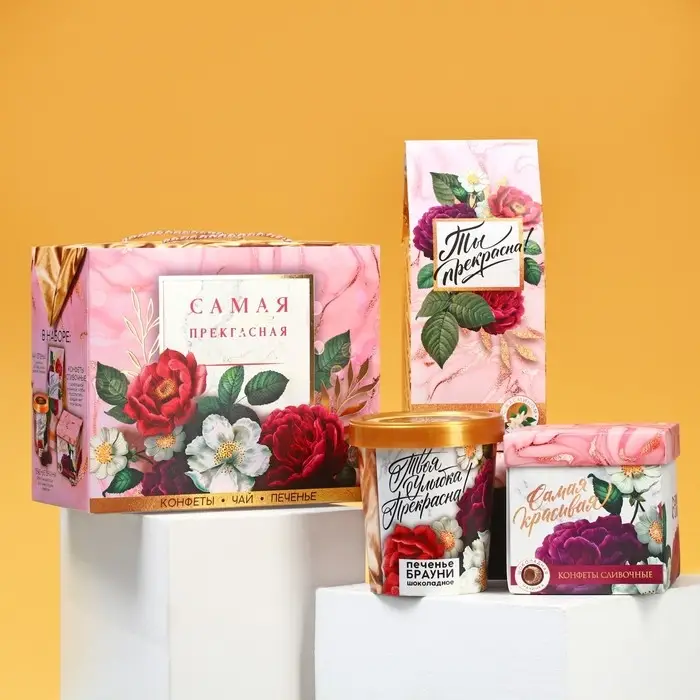 Подарочный набор «Самая прекрасная»: чай 50 г., печенье брауни 120 г., конфеты 110 г.