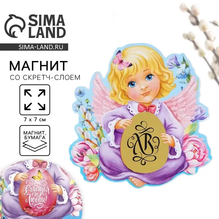 Магнит со скретч-слоем «Ангел» на пасху, 7×7 см
