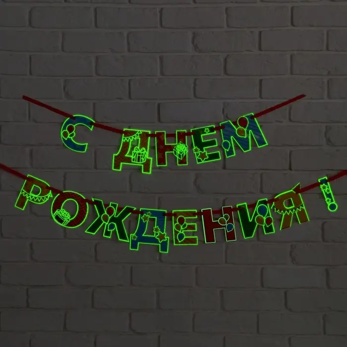 Гирлянда на ленте люминисцентная «С Днем Рождения», разноцветная, дл. 250 см