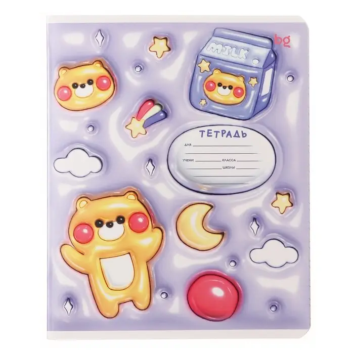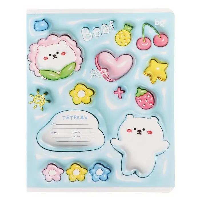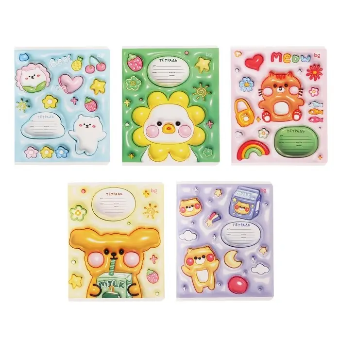 Тетрадь 12 листов в узкую линию на скрепке Inflated, обложка мелованный картон, ВД-лак, МИКС