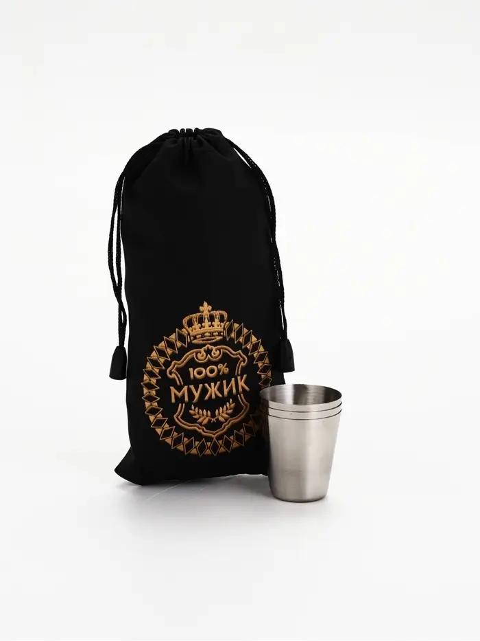 Стопки в чехле «100% Мужик»: нержавеющая сталь, набор 3 шт.×30 мл