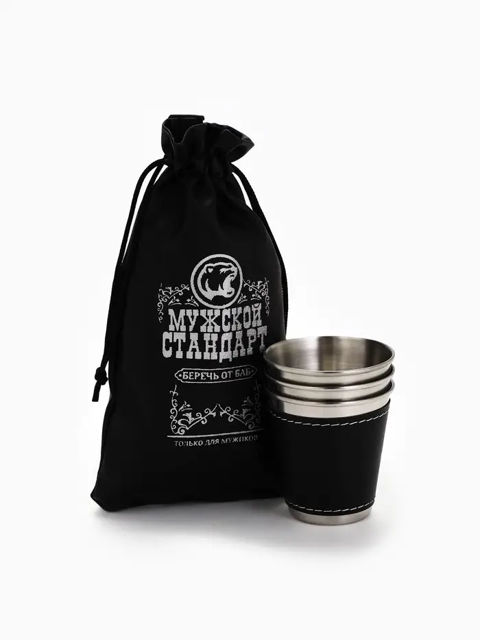 Стопки в чехле «Мужской стандарт»: нержавеющая сталь, набор 3 шт.×70 мл