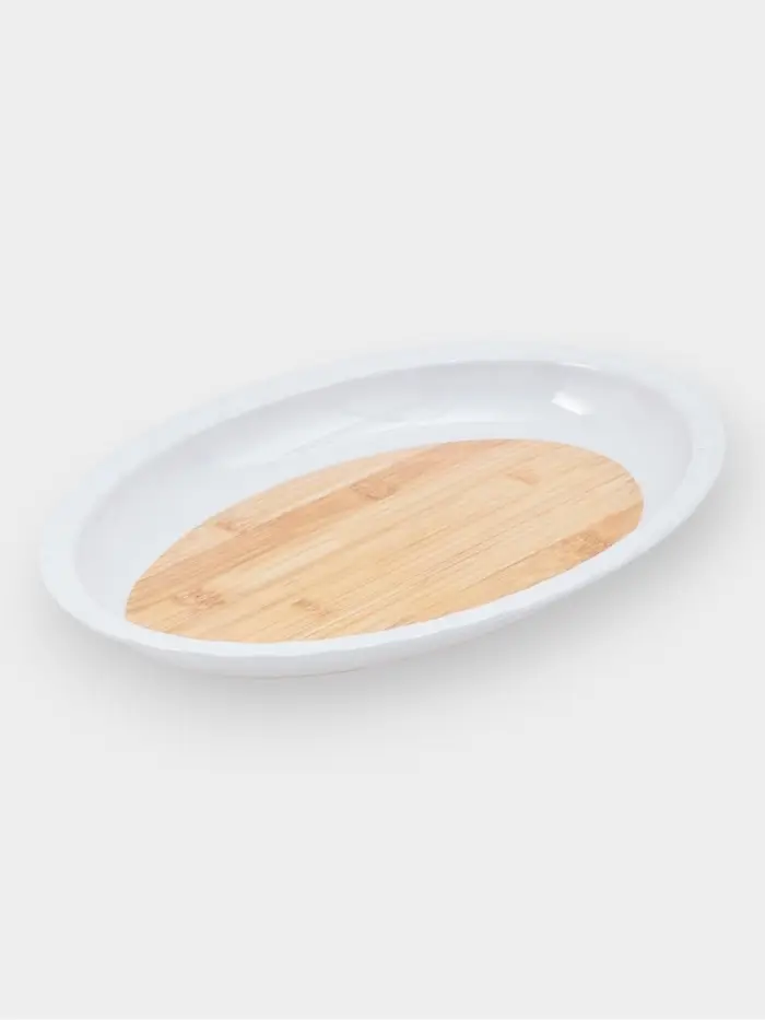 Поднос "Иллюзия бамбука" овальный пластиковый с ручками, размер 38,5x25,5x4 см