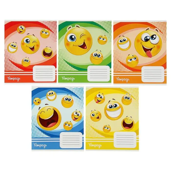 Комплект тетрадей из 10 штук (5 видов по 2 штуки), 48 листов в клетку Calligrata "Смайлики", обложка мелованный картон, блок офсет