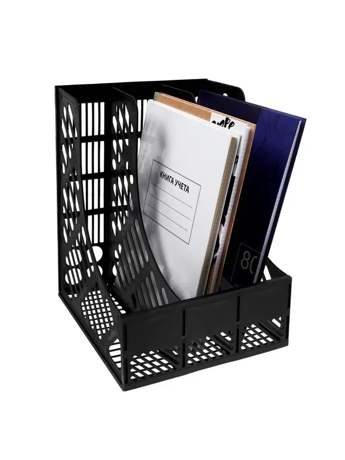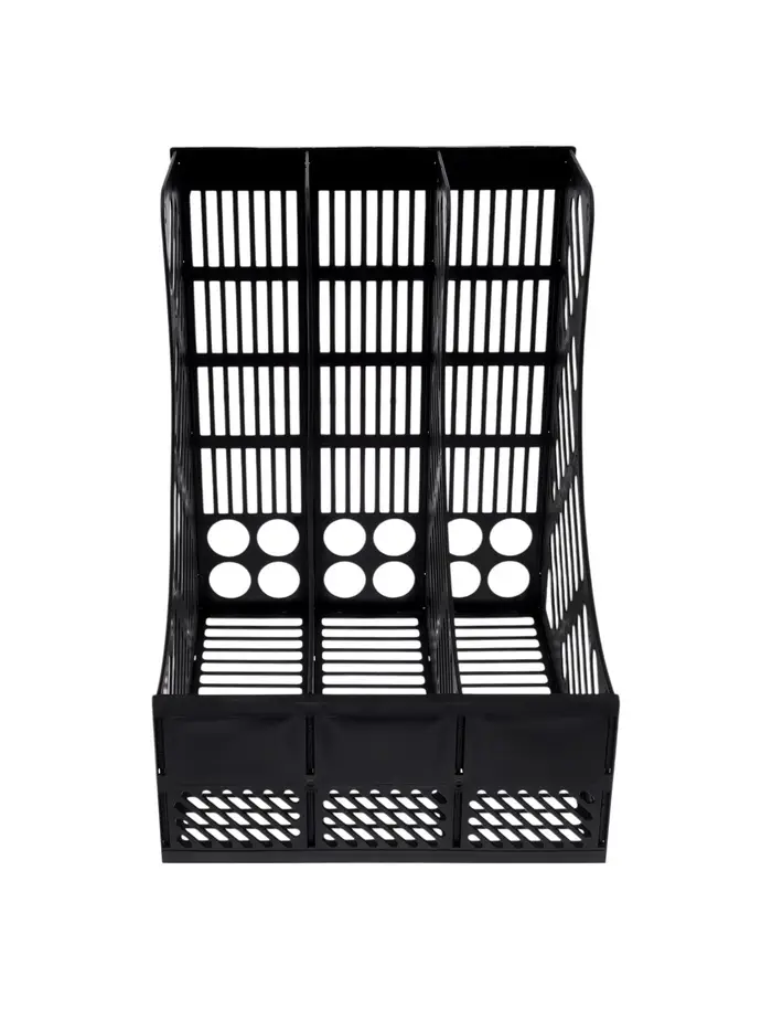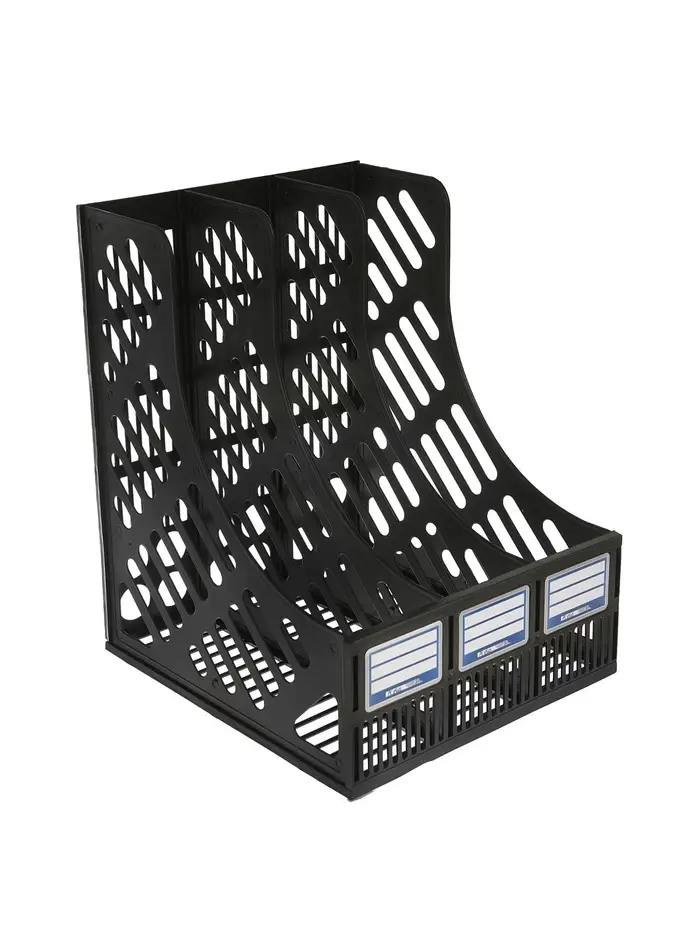 Этот трёхсекционный лоток для документов создан для поддержания порядка на рабочем столе. Его вертикальная конструкция экономит пространство, а разборная модульная система даёт гибкость в организации входящих, исходящих и текущих бумаг формата А4.