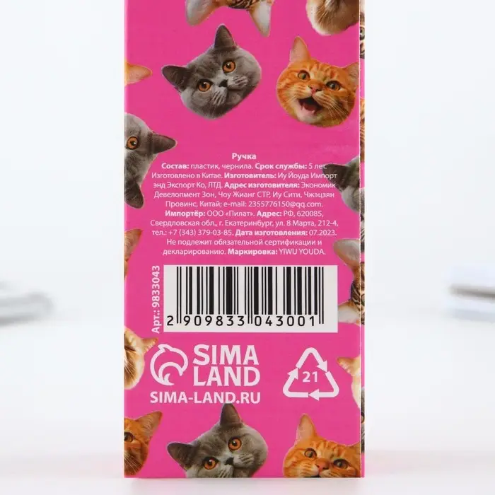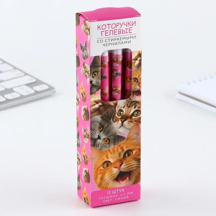 Ручка пиши стирай синяя паста 0,5 мм с колпачком «Котики»