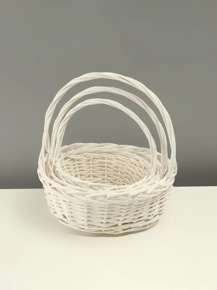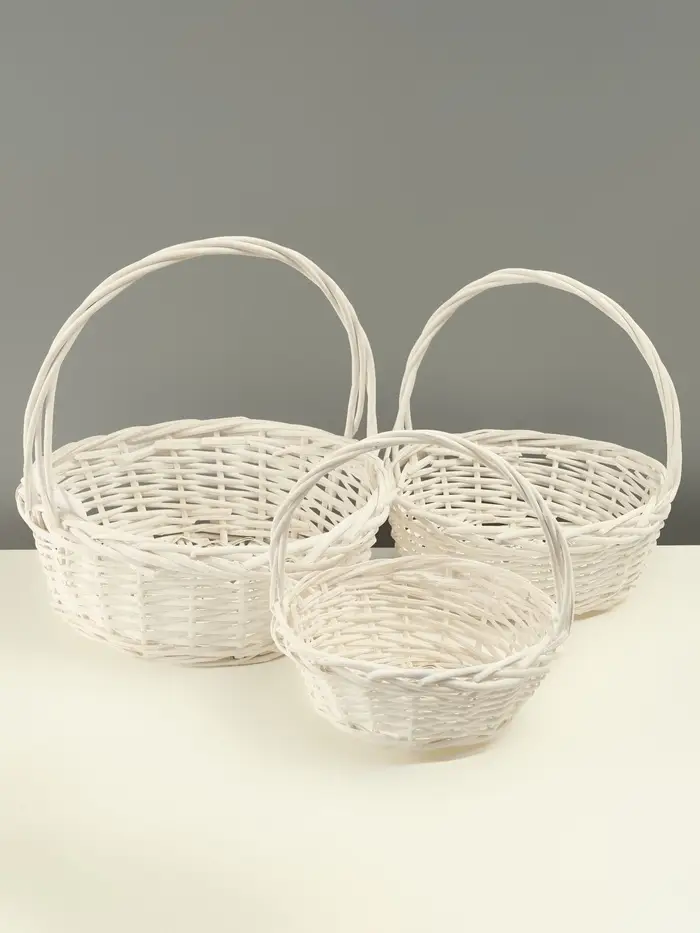 Набор корзин из 3 шт, 35х35х14/35 см, 30х30х12,5/30 см, 25х25х11/25 см, белый, ива