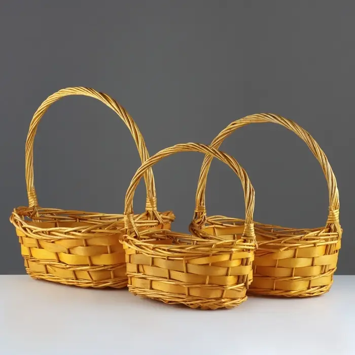 Корзина плетёная для хранения Fleet, из лозы, с ручкой, бежевая, набор 3 шт.