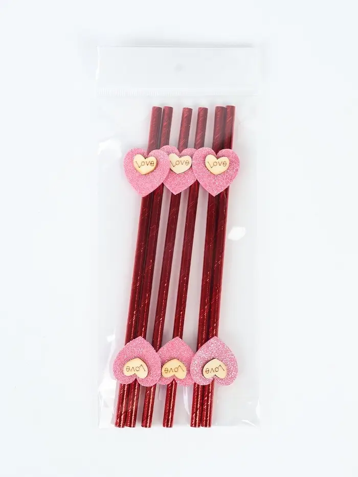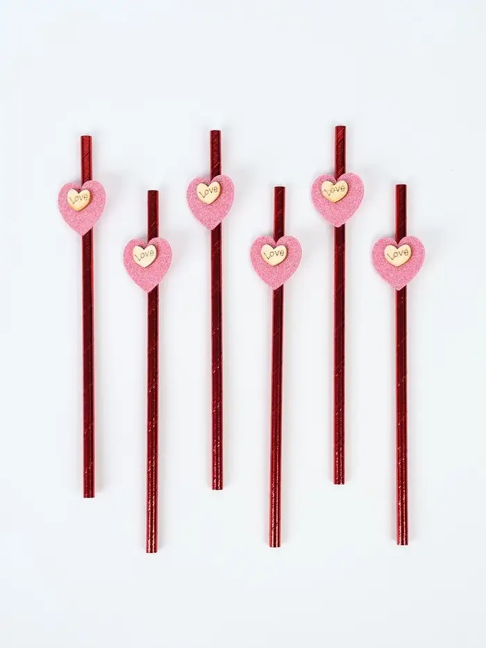 Трубочки для коктейля «Сердце», красные (набор 6 шт)