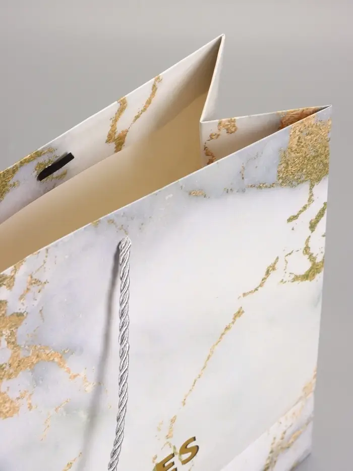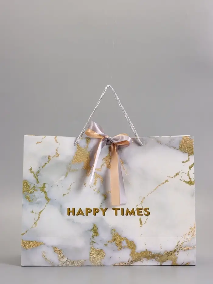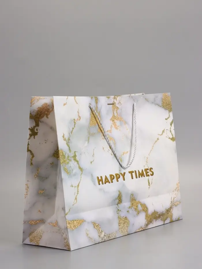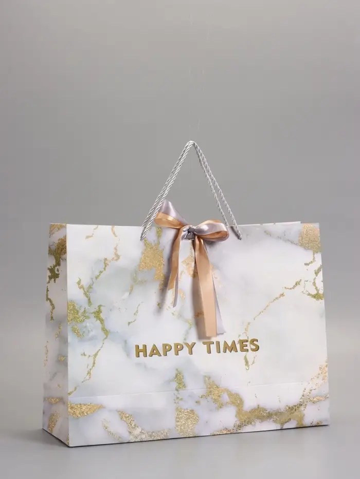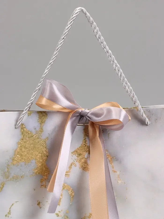 Пакет подарочный "Мрамор" , белый , с бантиком, 43 х 32 х 14 см