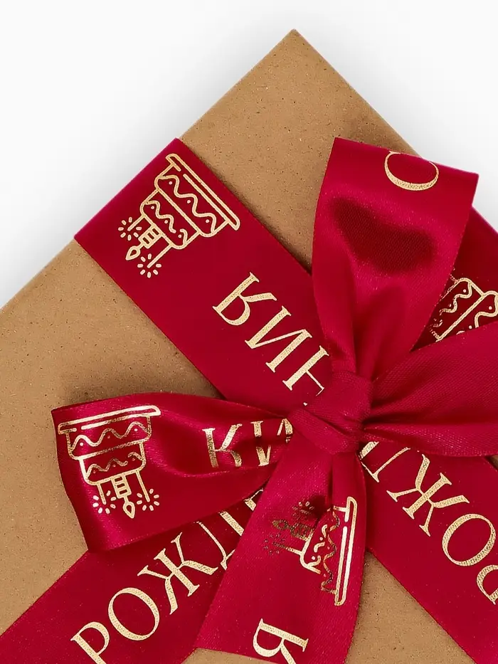 Лента атласная «С Днём рождения», тиснение, 4 см × 23 м (±1 м)