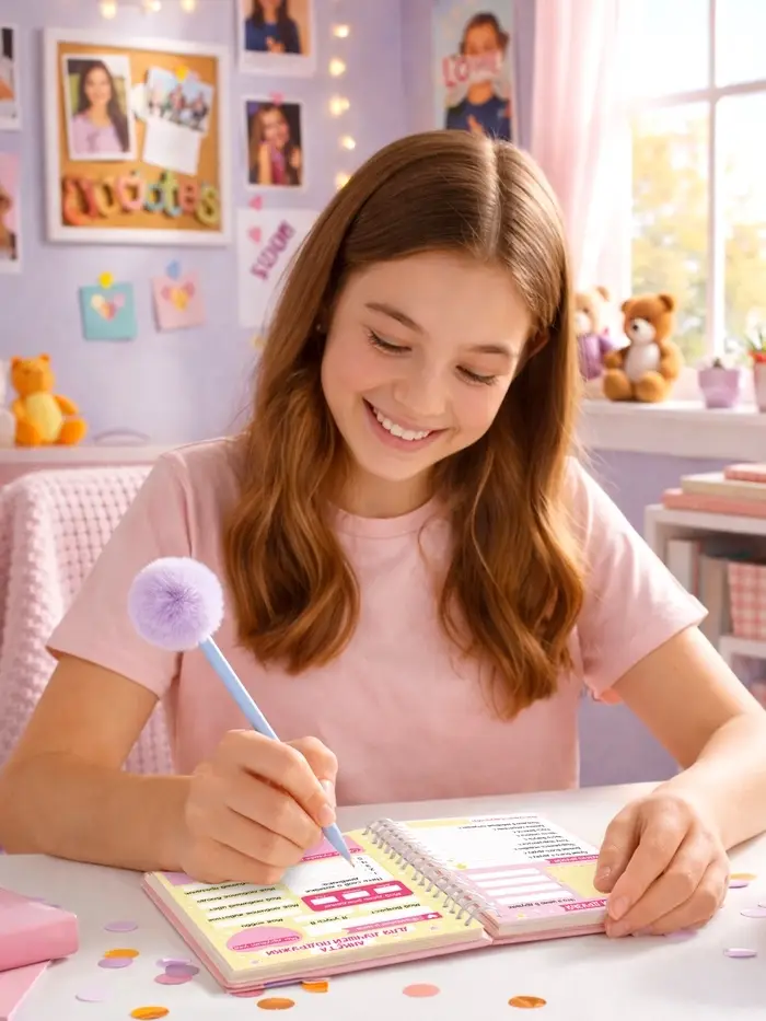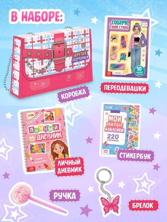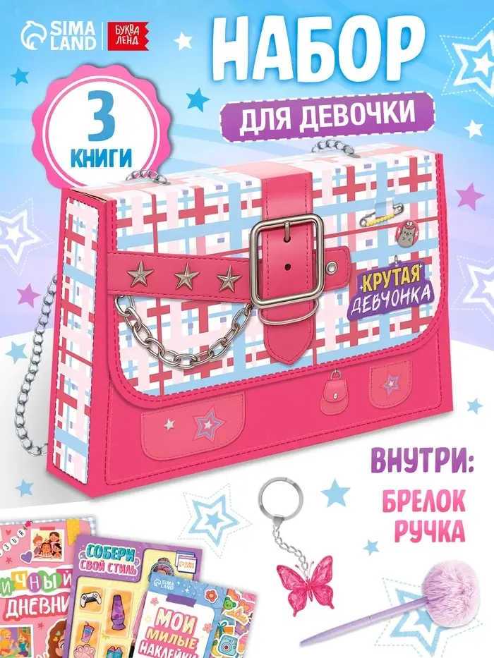 Этот комплект создан для девочки, которая уже знает: быть умной, смелой и доброй — это круто. Всё дополняется яркой ручкой для записей и брелком, который подчеркнёт её индивидуальность. Упаковано в подарочную коробку — готовый сюрприз, который говорит: «Ты справишься!»
