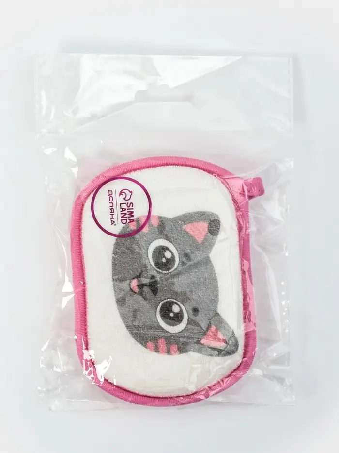 Мочалка для купания "Кошечка", 12х8 см, цвет розовый