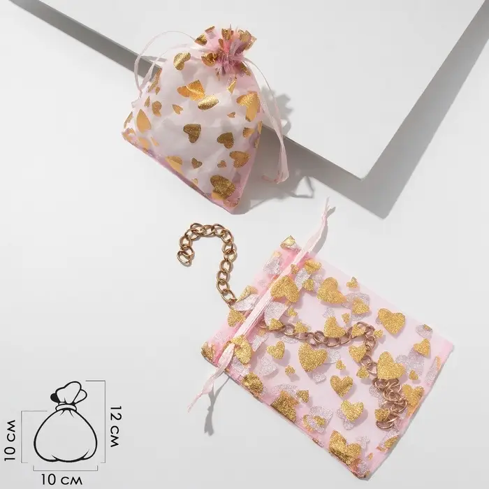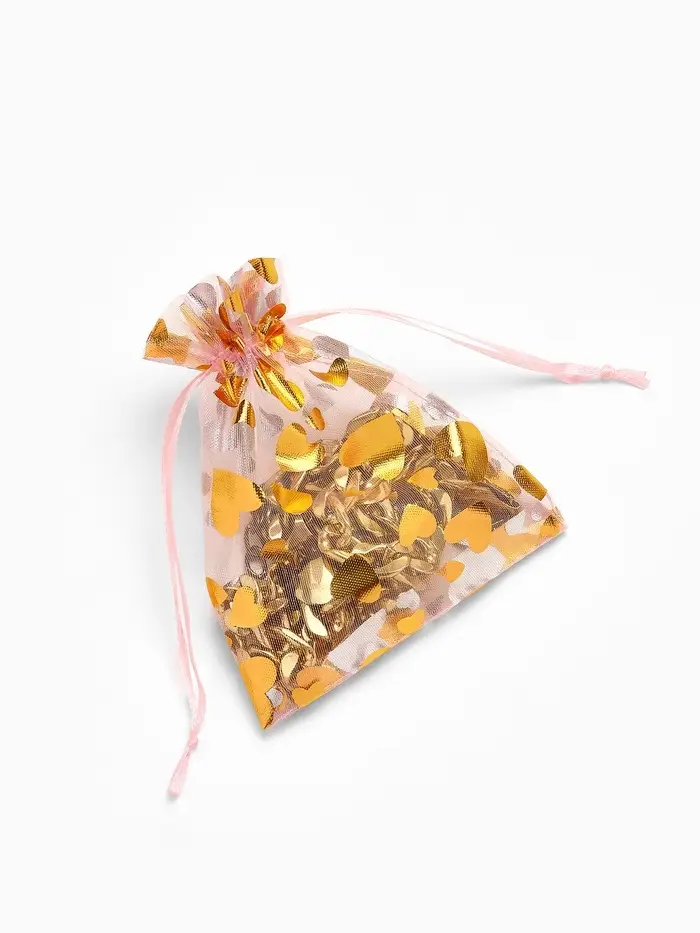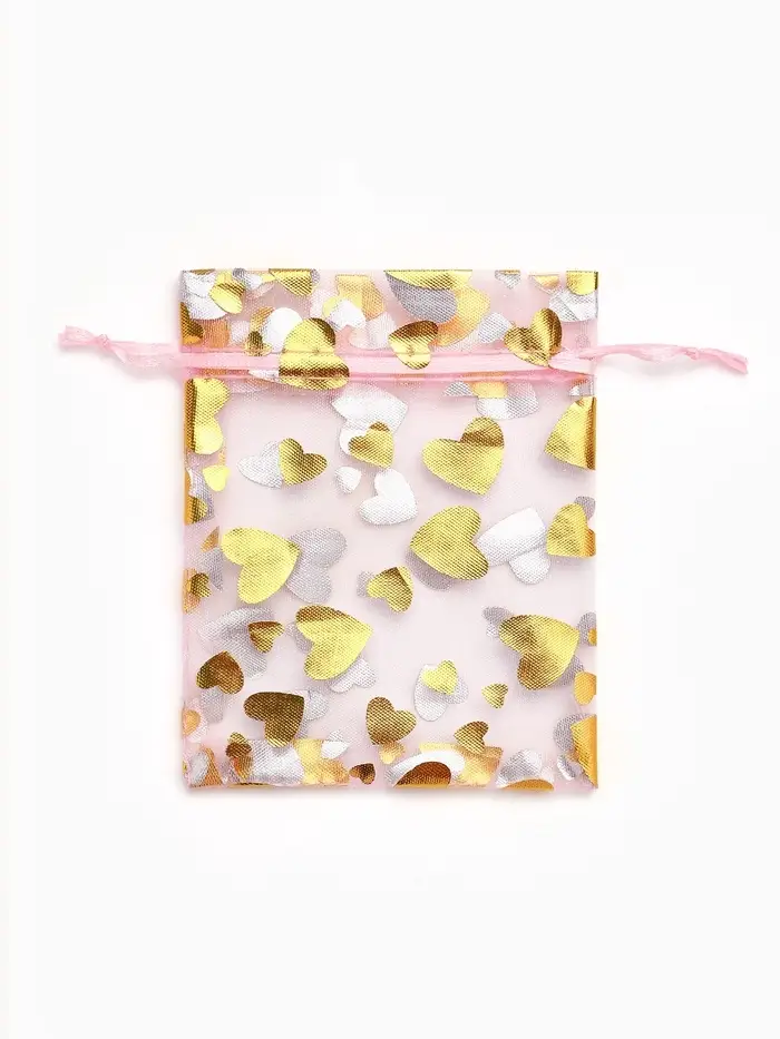 Набор мешочков подарочных 100шт. "Сердечки", 10*12, цвет розовый с золотом (4621385)