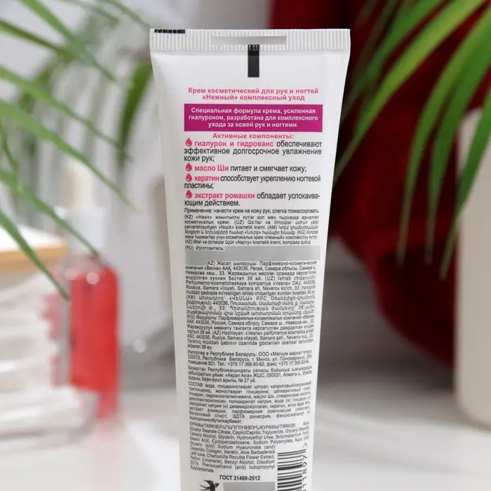 Формула крема для рук и ногтей Весна нежный, секреты нежности разработана специально для комплексного ухода за кожей рук и ногтями. Крем для рук и ногтей интенсивно питает и увлажняет, придавая мягкость и бархатистость, а специальный компонент способствует укреплению ногтей. Крем для рук белого цвета, консистенция не плотная. Крем для рук очень лёгкий, моментально впитывается. Крем для рук не оставляет после себя неприятной липкости и жирности, делая её красивой и ухоженной. Запах крема для рук приятный, парфюмированный, стойкий. крема для рук и ногтей Весна нежный, секреты нежности предназначен для восстановления, устранение шелушений и ощущения стянутости кожи для нормальной и жирной кожи.