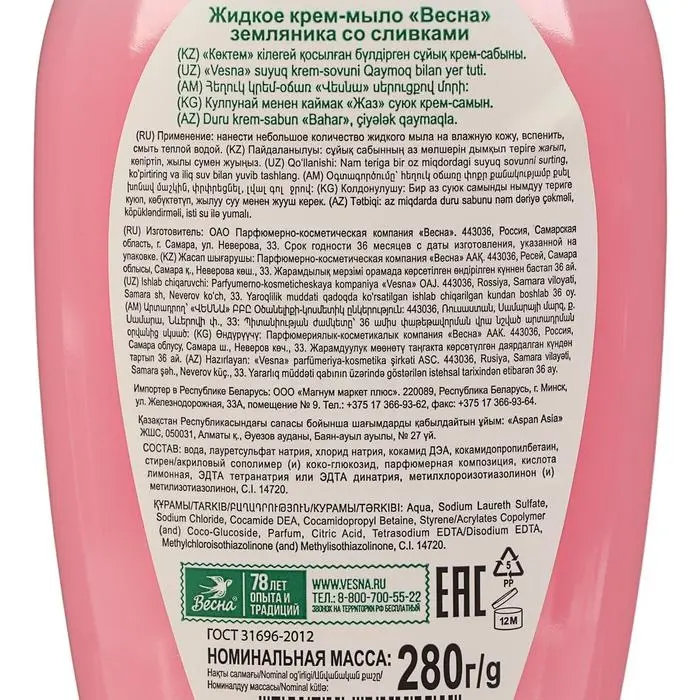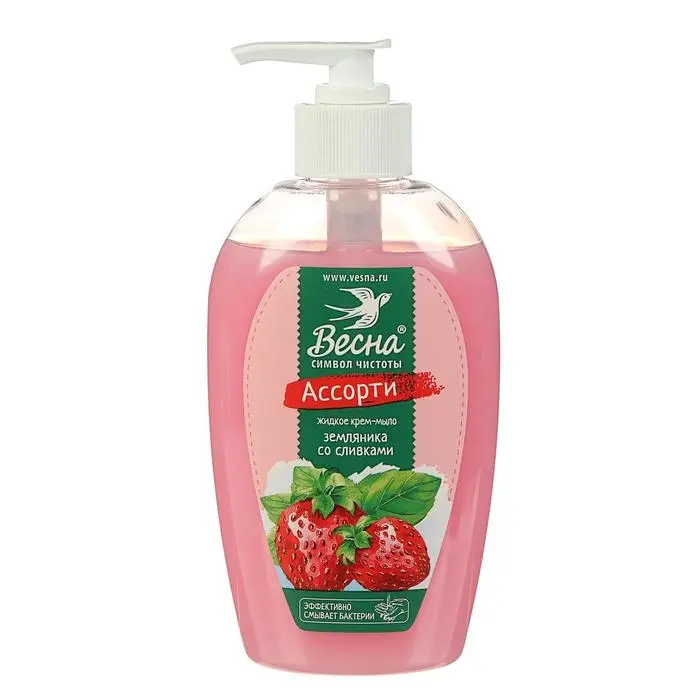Описание: жидкое крем-мыло на основе натуральных природных компонентов. Крем-мыло не сушит кожу, бережно очищает ее и идеально подходит для повседневного использования. Входящая в состав крем-мыла отдушка земляника со сливками очаровывает сливочной мягкостью и нежностью душистых ягод.