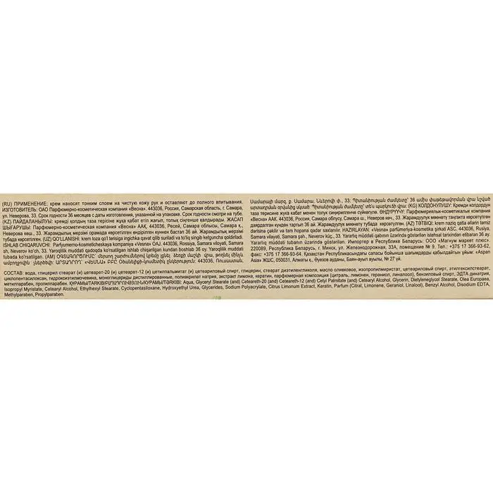 Крем для рук "Весна", "Лимонно-глицериновый", 40 мл