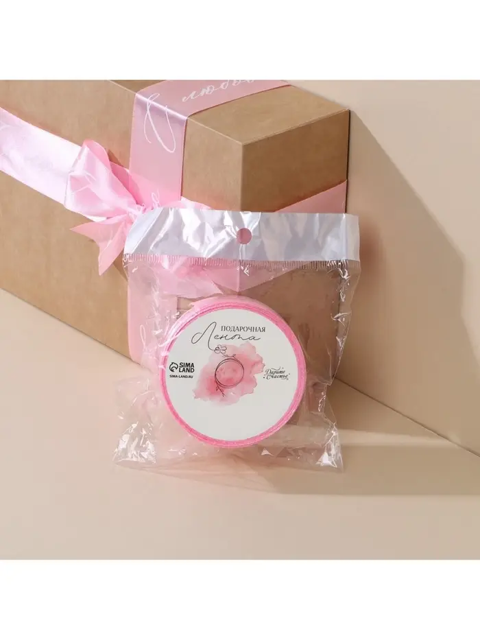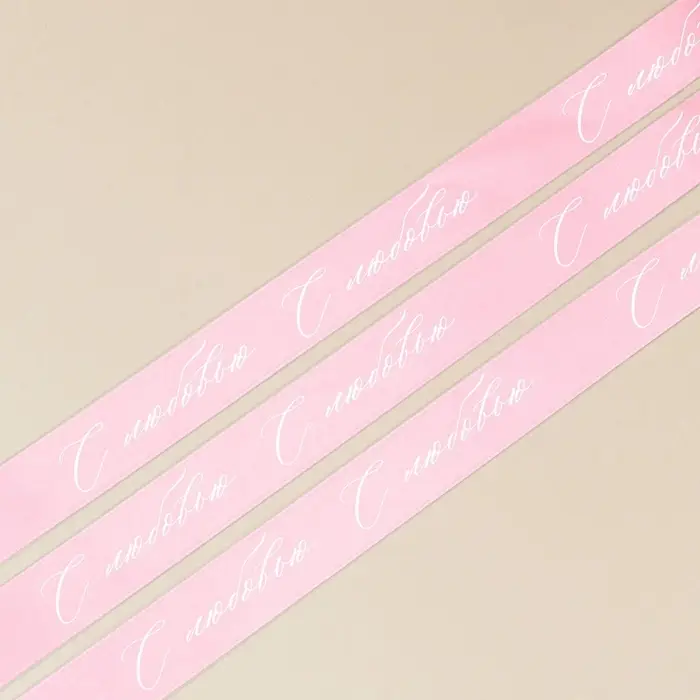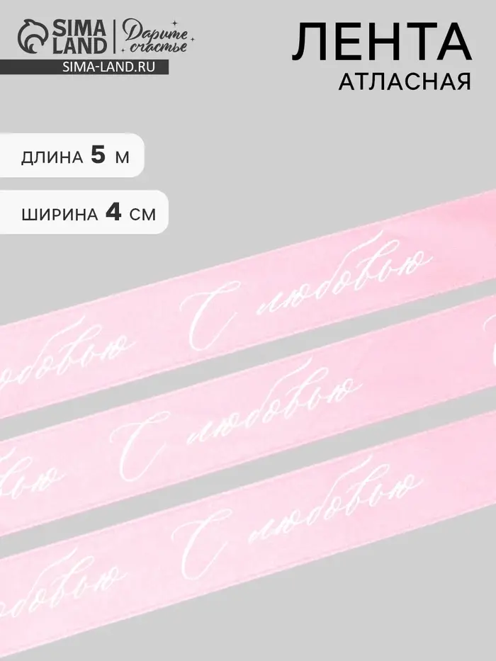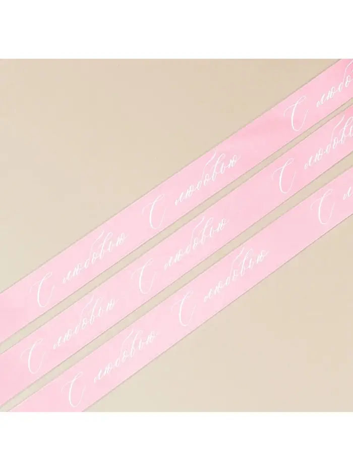 Лента атласная, подарочная упаковка, «С любовью», розовая, 4 см × 5 м