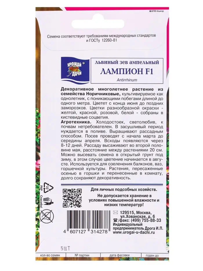 Семена цветов Львиный зев выс.амп. Лампион F1 5 шт.