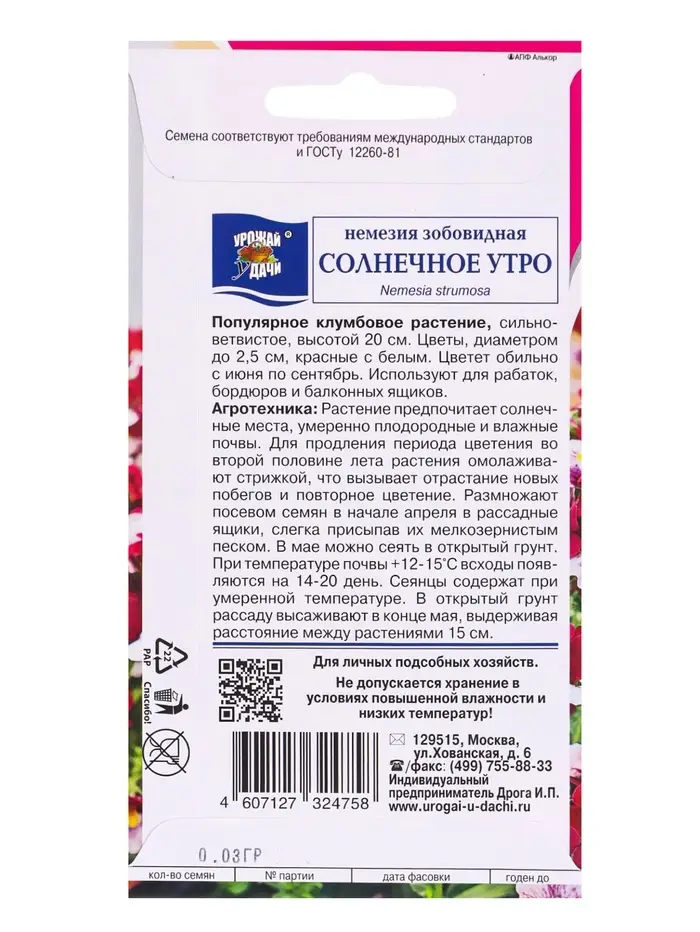 Семена цветов Немезия зоб. СОЛНЕЧНОЕ УТРО 0,03 г.