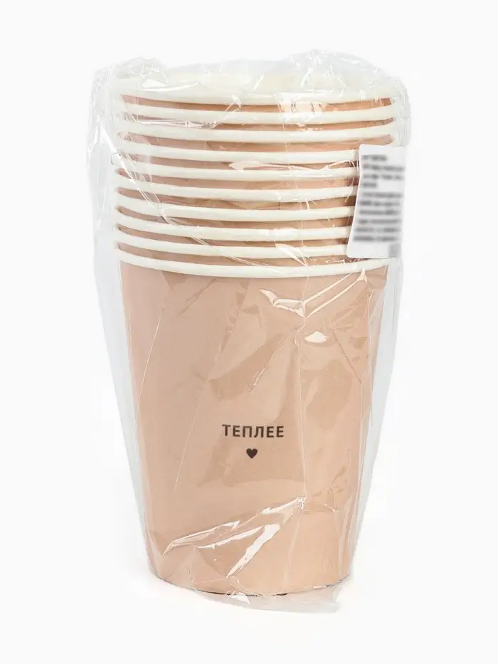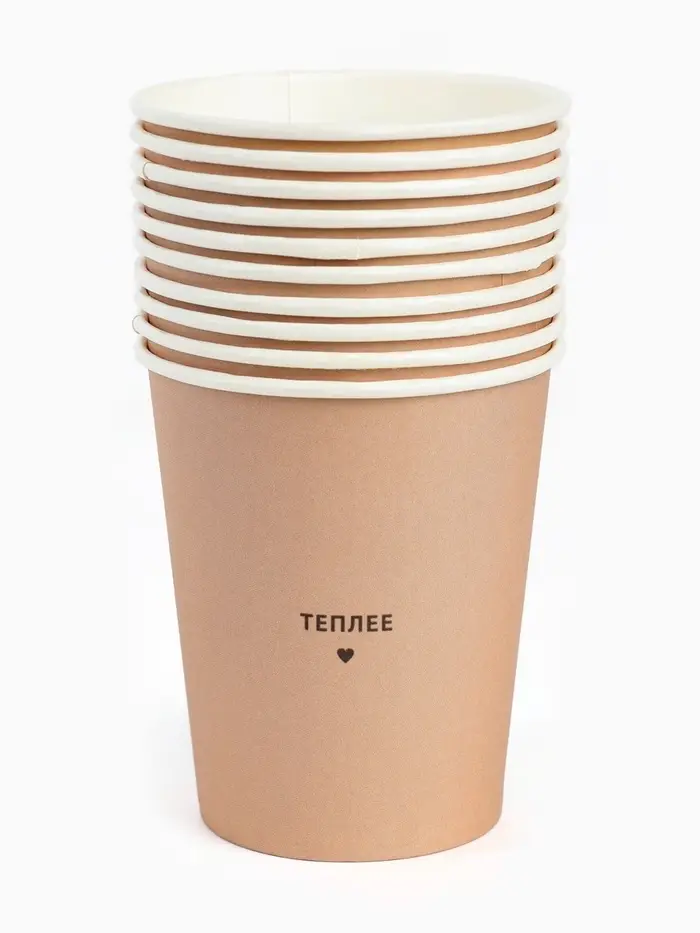 Стаканы одноразовые бумажные для кофе «Теплее», цвет бежевый, 10 шт, 250 мл