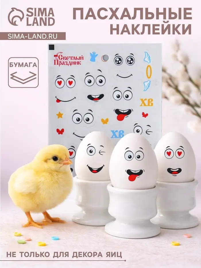 - Наклейки легко и надежно фиксируются на скорлупе и глазури.