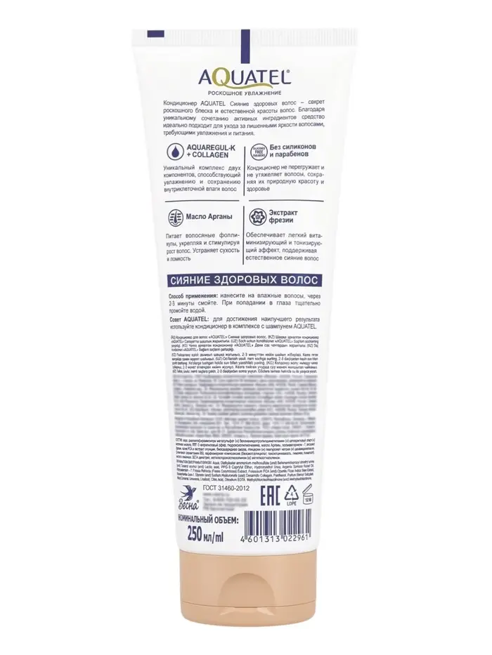 Преимущества кондиционера «AQUATEL» Сияние здоровых волос, 250 мл: