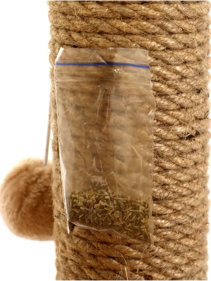 - Встроенная когтеточка: Вертикальная поверхность обтянута плотным sisal-шнуром. Это естественное решение для точки когтей, которое помогает сохранить вашу мебель в целости.