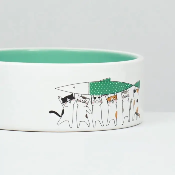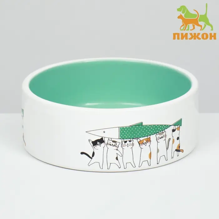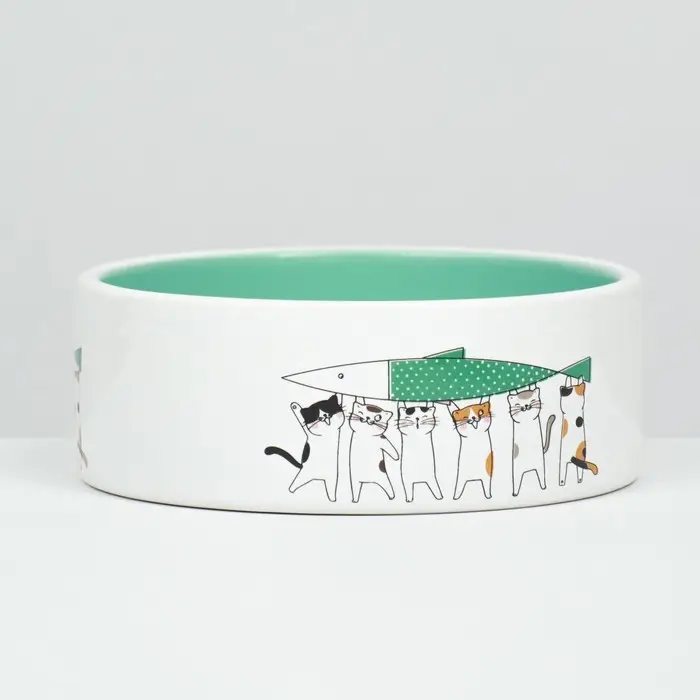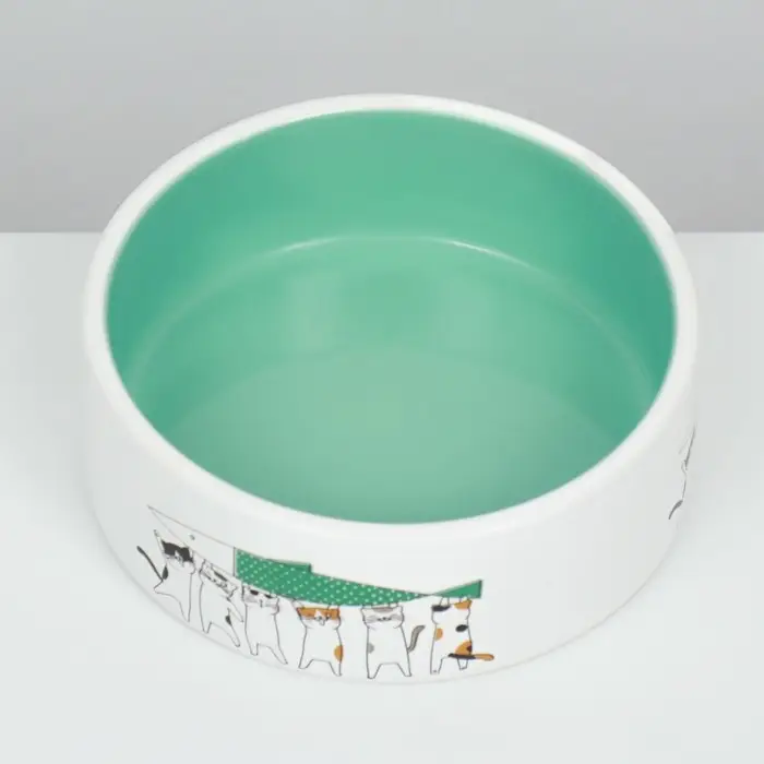 Миска выполнена из высококачественной керамики, что обеспечивает её долговечность и безопасность для вашего питомца. Привлекательный рисунок с милыми котами и нежный мятный цвет поднимут настроение вам и вашему питомцу каждый день.
