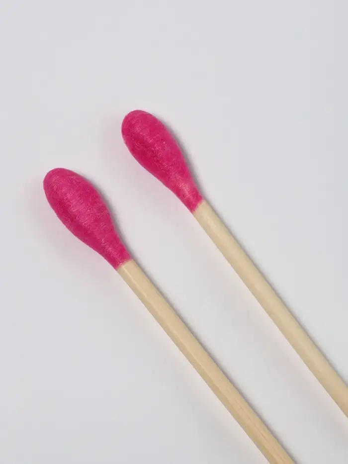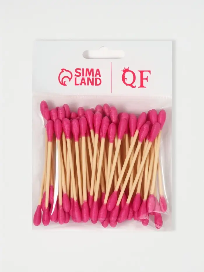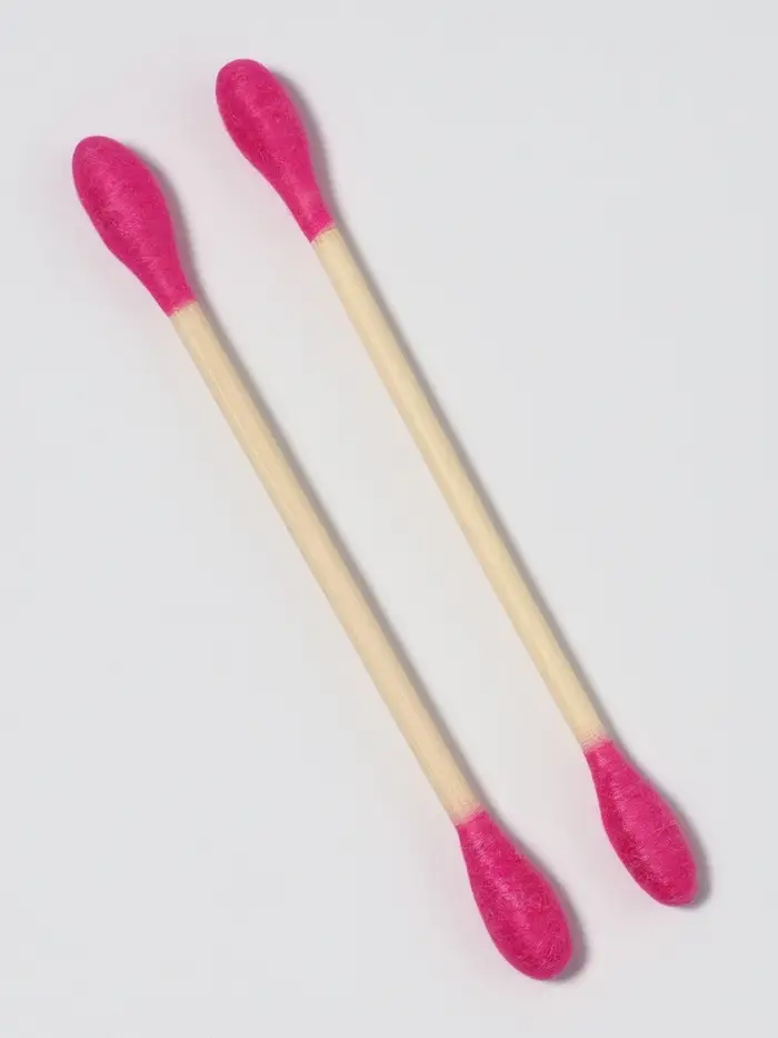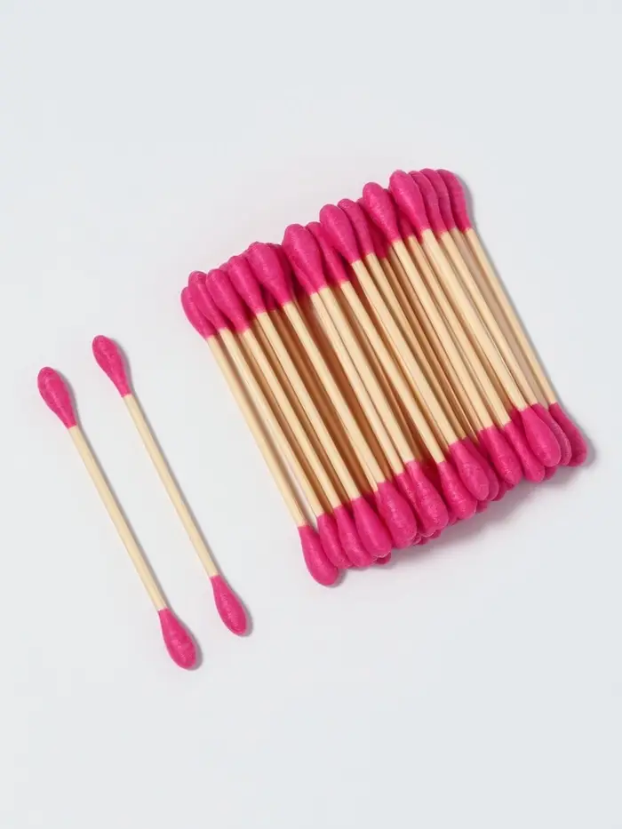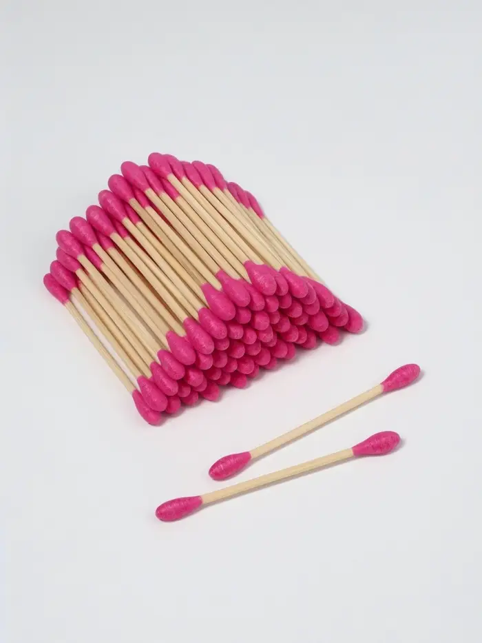 Ватные палочки на деревянной основе, 7 см, 64 шт., розовые