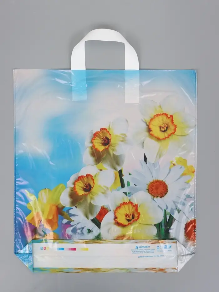 Пакет "Цветочная история", полиэтиленовый с петлевой ручкой, 38 х 42 + 3 см, 37 мкм