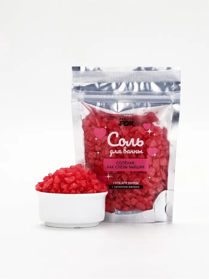 BEAUTY FOX соль для ванны "соленая, как слезы бывших", 150 гр, с ароматом малины