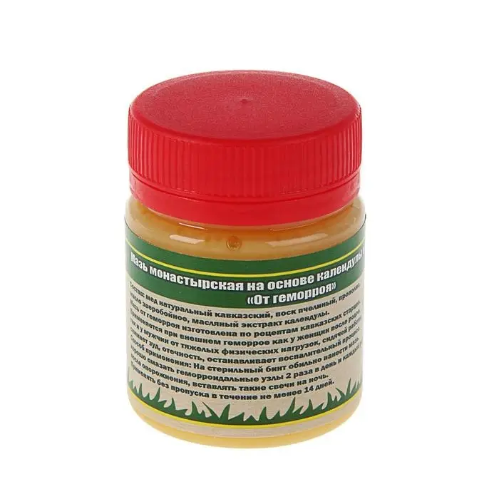 Способ применения: ежедневно на ночь смазывайте мазью геморроидальные узлы либо вводите в задний проход пропитанный мазью тампон. Применять курсом не менее 14 дней.