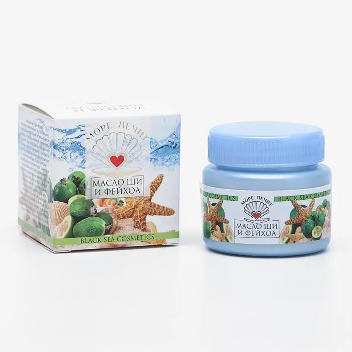 Твёрдое масло ши обладает противовоспалительными, омолаживающими, питательными свойствами. Натуральное масло фейхоа – это кладезь витаминов, жирных кислот и ценного йода, необходимых для сохранения здоровья, мягкости, эластичности и молодости кожи. Сочетание масла ши и фейхуа действует на кожу волшебным образом - улучшает кровообращение и активно питает, стимулирует регенерацию клеток кожи, разглаживает и подтягивает, выравнивает и освежает цвет кожи, благодаря чему лицо выглядит свежим и помолодевшим. Это поистине полезное средство можно применять для волос, его смягчающие, защитные, питательные и увлажняющие свойства позволяют использовать его при любом типе волос. Масло избавит от сухости, ломкости и секущихся концов, выровняет структуру волоса, сделает их гладкими, блестящими и послушными.
