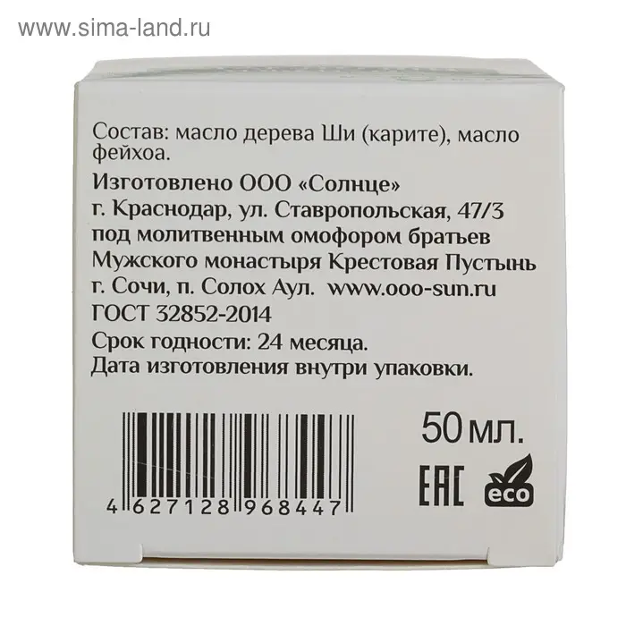 Состав: масло дерева Ши (карите), масло фейхоа.