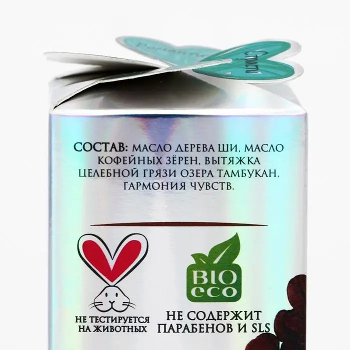 Состав: масло дерева ши (карите), масло жареного кофе, вытяжка целебной грязи озера Тамбукан.
