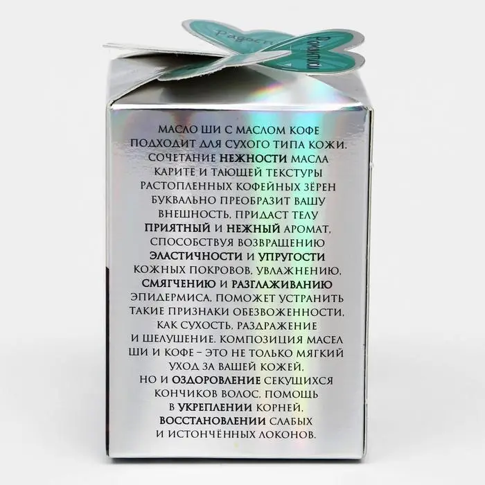 Масло ши с маслом кофе возвращает коже эластичность и повышает упругость. Способствует обновлению и омоложению, глубоко увлажняет.