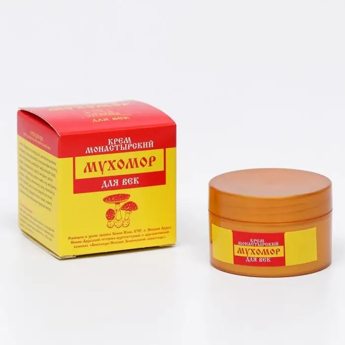 Крем для век имеет ценный состав, в основе которого масляная вытяжка мухомора и гиалуроновая кислота, наиболее ценные в омоложении и поддержании тонуса кожи вокруг глаз. Считается, что натуральные масла и экстракты, входящие в состав крема, обладают регенерирующими, антиоксидантными и иммуномодулирующими свойствами, поэтому могут защищать самые нежные кожные покровы и способствовать повышению упругости и эластичности кожи, питать клетки эпидермиса, улучшать микроциркуляцию, разглаживать возрастные и мимические морщинки кожи век, уменьшая тёмные круги и снимая отёчность.