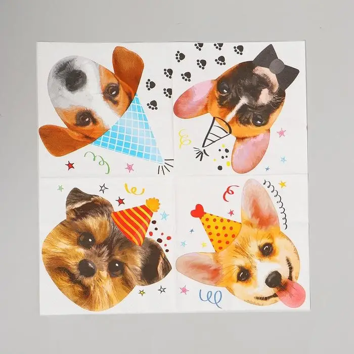 Салфетки бумажные «Собачки», набор 20 шт., 33х33 см