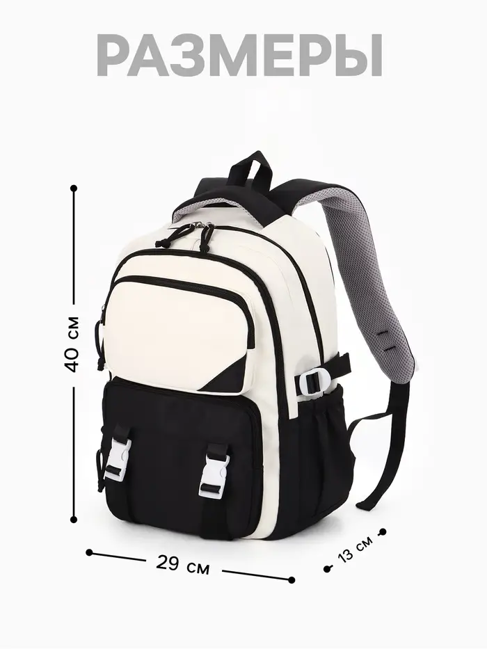 Школьный рюкзак в чёрно-белом исполнении подойдёт для учебных будней без лишнего визуального шума. Сдержанный дизайн легко вписывается в школьный дресс-код и остаётся актуальным из года в год. Это удобный вариант для учеников средней и старшей школы, которым важно сочетание порядка, комфорта и нейтрального внешнего вида.