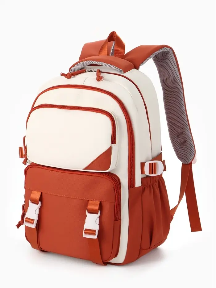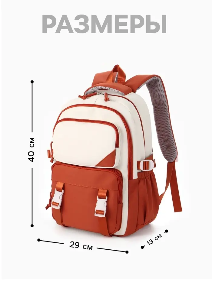 Школьный рюкзак с ярким цветовым акцентом подойдёт тем, кто хочет добавить индивидуальности в повседневный учебный образ. Сочетание светлой основы и тёплого оттенка выглядит живо, но сдержанно, поэтому рюкзак остаётся уместным и в школе, и на дополнительных занятиях.