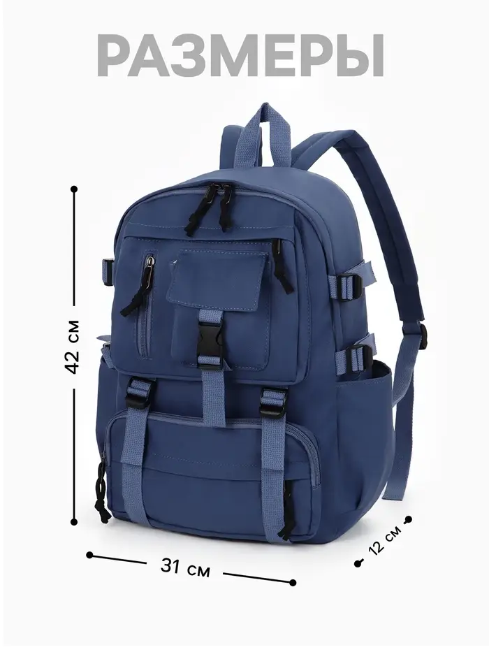 Рюкзак школьный, спортивный, однотонный, 1 отделение, 8 карманов, 31×12×42 см, синий