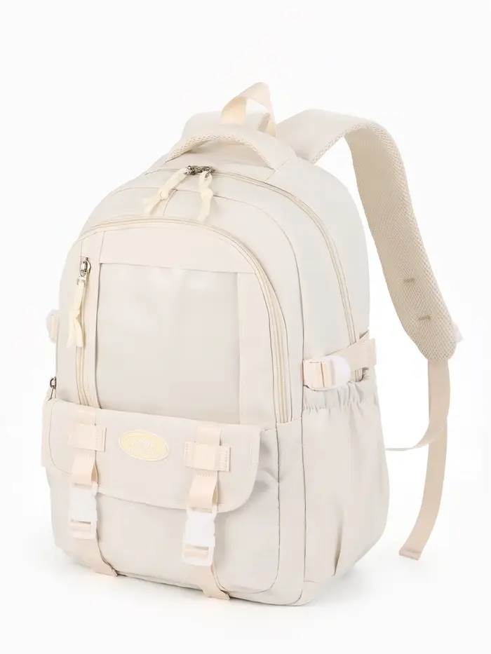 Белый школьный рюкзак с лаконичным дизайном подойдёт для девочки, которой важны аккуратность и спокойный стиль. Однотонное оформление выглядит легко и опрятно, не отвлекая от школьного образа и оставаясь уместным для учёбы, кружков и дополнительных занятий.