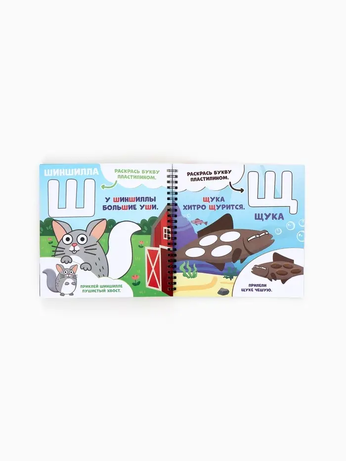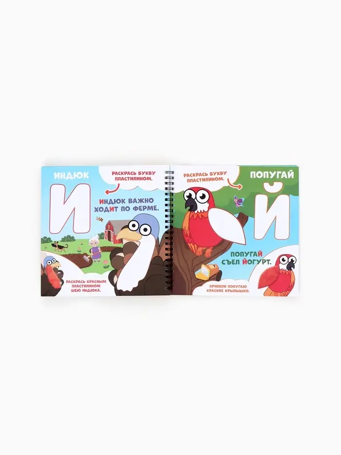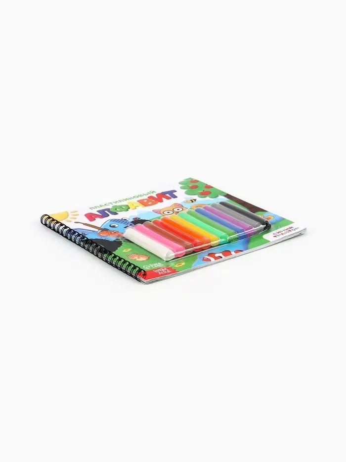 Интерактивное пособие для изучения букв и развития мелкой моторики. В комплекте: книга с заданиями и 12 цветов пластилина. Подходит для занятий дома и в детском саду. Рекомендовано детям от 3 лет.