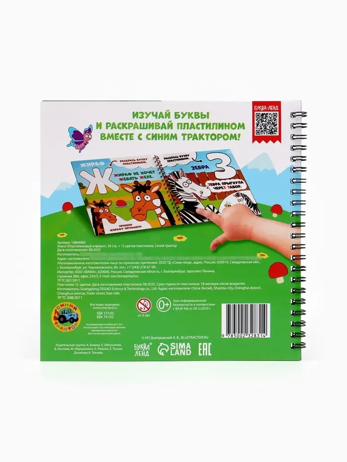 Книга «Пластилиновый алфавит. Синий трактор», 34 стр. + 12 цветов пластилина