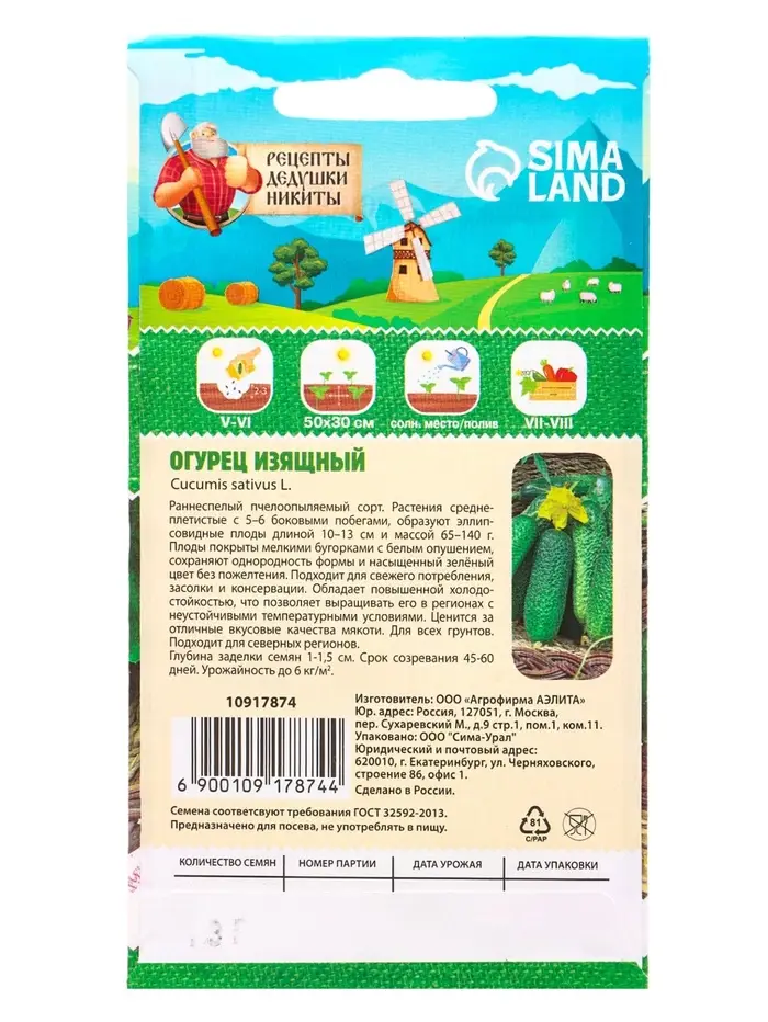 Семена Огурец «Изящный», 0.3 г
