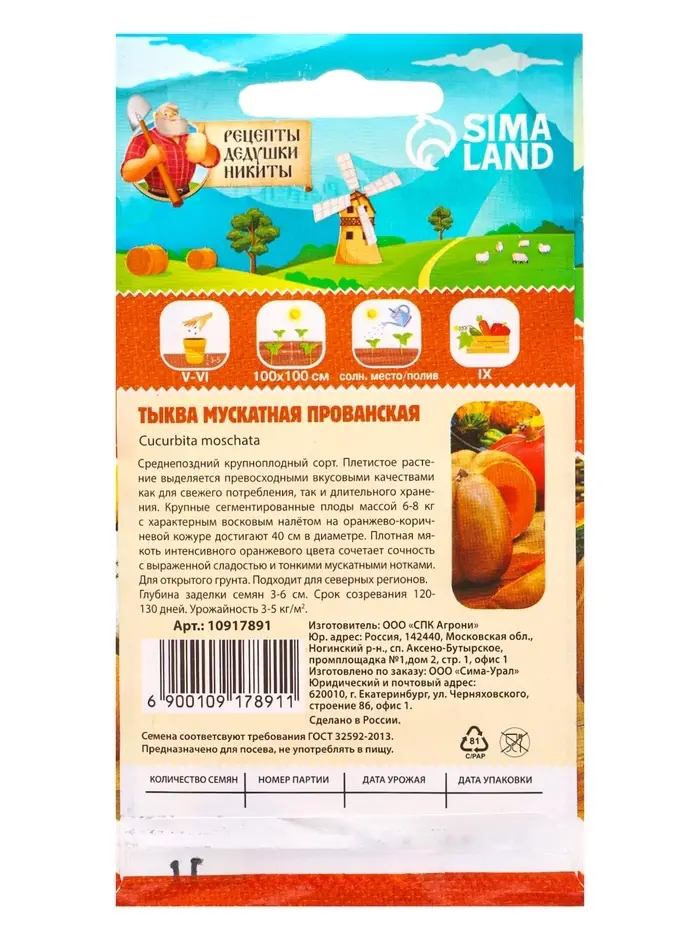 Семена Тыква «Мускатная Прованская», 1 г