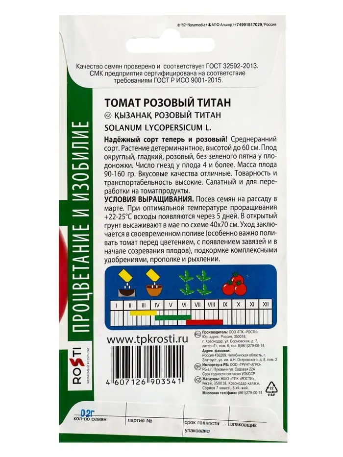 Семена Томат Титан розовый средний Д Агроуспех 0,2г (300)
